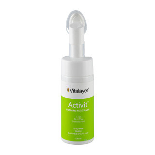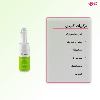 فوم شستشوی صورت ویتالیر مدل Activit، پاک کننده سازگار با ساختار طبیعی پوست برای پوست های چرب و مختلط است که به آرامی چربی اضافه و آلودگی ها را تمیز می کند و چهره را پاک و شاداب نگه می دارد. پمپ به همراه برس سیلیکونی نرم، شست و شوی دقیق تر و حس ماساژ ملایم را ایجاد می کند و به حس شادابی کمک می کند. ترکیب ویتامین C، آلوئه ورا و دکسپانتنول از پوست در برابر عوامل محیطی محافظت می کند و رطوبت طبیعی آن را حفظ می کند تا بعد از شست و شو احساس کشیدگی نداشته باشید.