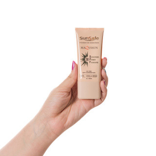 ضد آفتاب سان سیف کرم پودری و پرایمری مکیسان با SPF50 رنگی بژ وانیلی