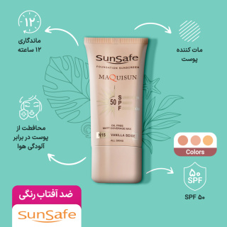 ضد آفتاب سان سیف کرم پودری و پرایمری مکیسان با SPF50 رنگی بژ وانیلی