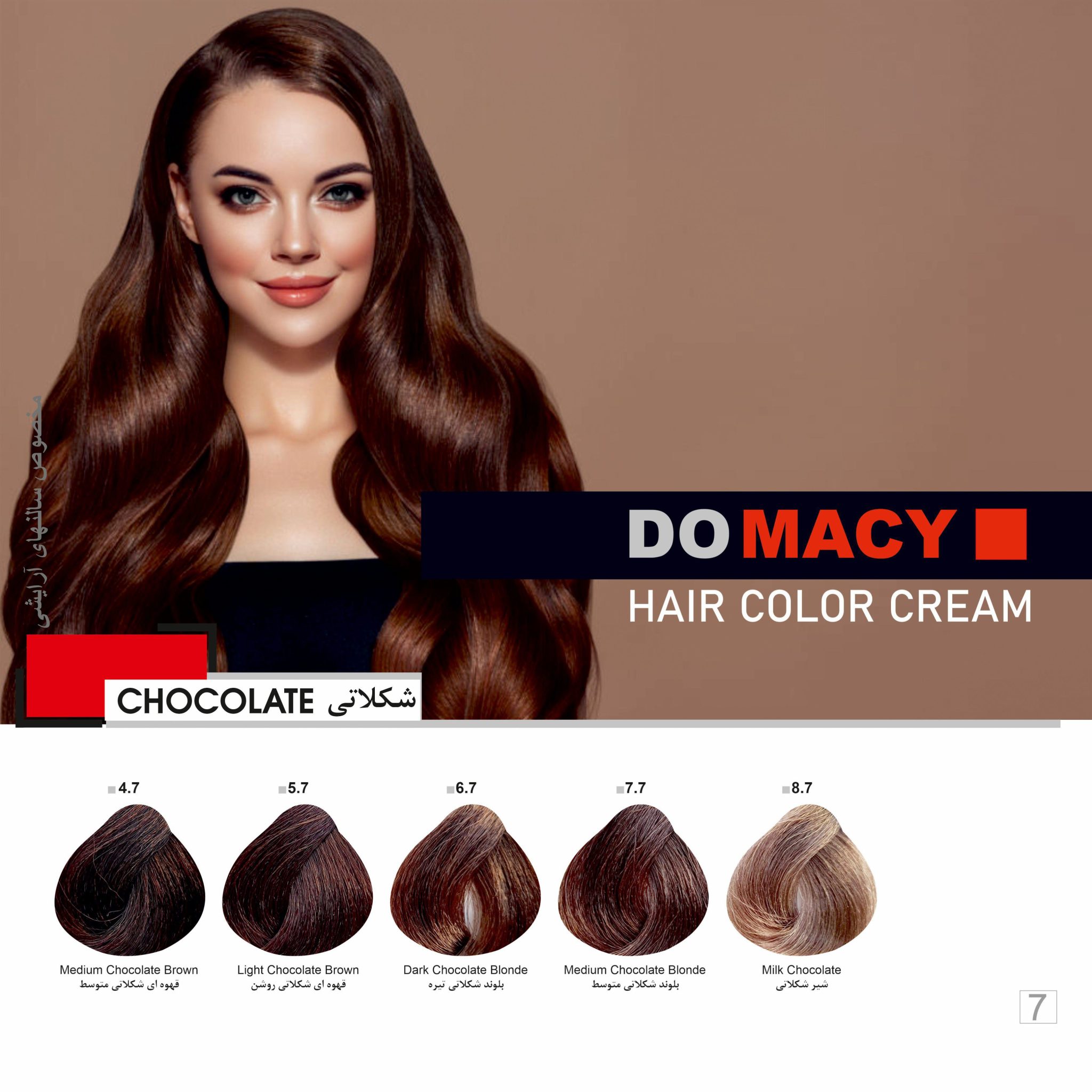 رنگ مو دوماسی DOMACY بلوند شکلاتی متوسط سری شکلاتی 7.7