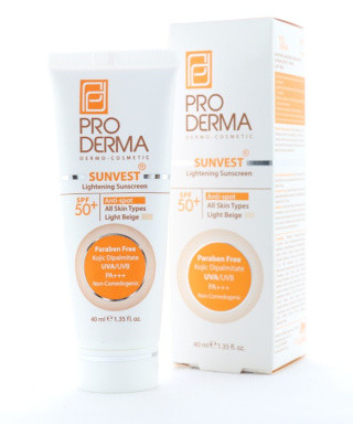ضد آفتاب روشن کننده سان وست پرودرما با فاکتور حفاظتی SPF50، آثار لک ها را کم رنگ کرده و رنگ پوست را یکنواخت می کند و با کاهش سنتز ملانین، از ایجاد لک پیشگیری می کند.