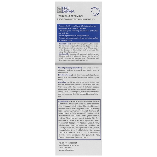 کرم ژل آبرسان پرودرما مدل Hydravest مناسب صورت و گردن حجم 40 میلی لیتر