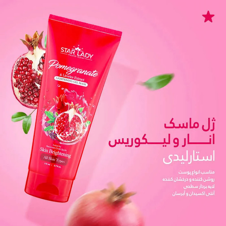 ژل ماسک روشن کننده استار لیدی حاوی عصاره انار حجم 175 میلی لیتر