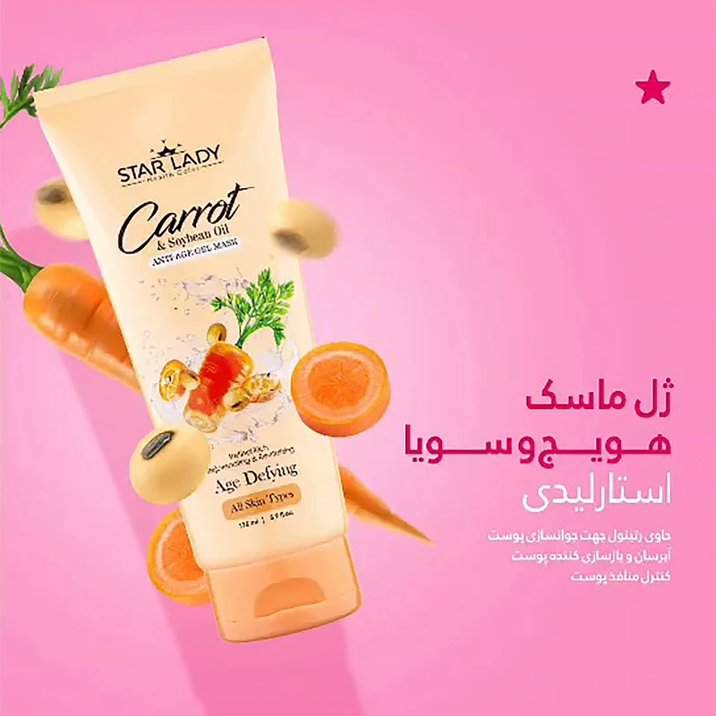 ژل ماسک جوان کننده استار لیدی حاوی عصاره هویج حجم 175 میلی لیتر