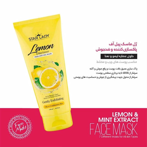 ژل ماسک پیل-آف استار لیدی حاوی عصاره لیمو و نعنا