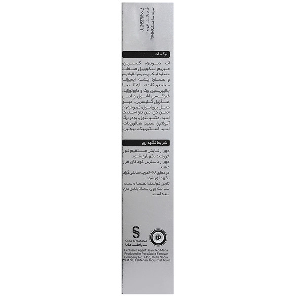 آب دیونیزه، گلیسرین، منیزیم آسکوربیل فسفات، عصاره لیکوپودیوم کلاواتوم و عصاره ریشه ایمپراتا سیلیندریکا، عصاره آلبیزیا جالیبریسین برک و داروتوزاید، فنوکسی اتانول و اتیل هگزیل گلیسرین، آمینو متیل پروپانول، کربومر 940، اتیلن دی آمین تترا استیک اسید، دکسپانتنول، پودر برگ آلوئه ورا، سدیم هیالورونات، اسید آسکوربیک، بیوتین.