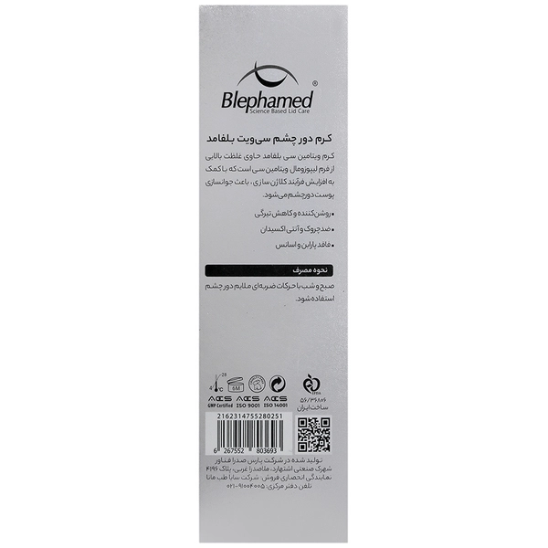 لیست ترکیبات کرم دور چشم بلفامد مدل C-VIT