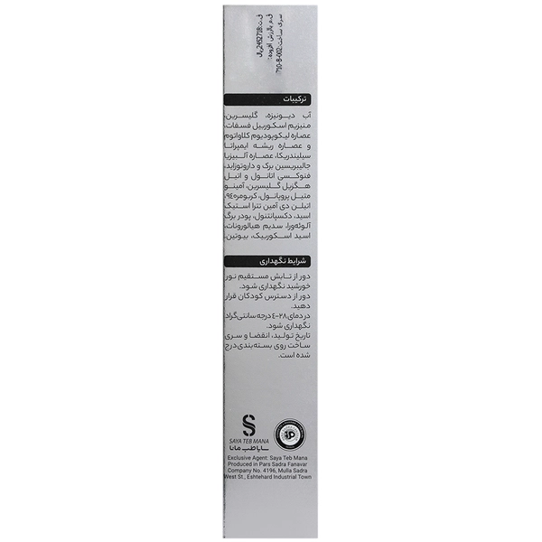 آب دیونیزه، گلیسرین، منیزیم آسکوربیل فسفات، عصاره لیکوپودیوم کلاواتوم و عصاره ریشه ایمپراتا سیلیندریکا، عصاره آلبیزیا جالیبریسین برک و داروتوزاید، فنوکسی اتانول و اتیل هگزیل گلیسرین، آمینو متیل پروپانول، کربومر 940، اتیلن دی آمین تترا استیک اسید، دکسپانتنول، پودر برگ آلوئه ورا، سدیم هیالورونات، اسید آسکوربیک، بیوتین.