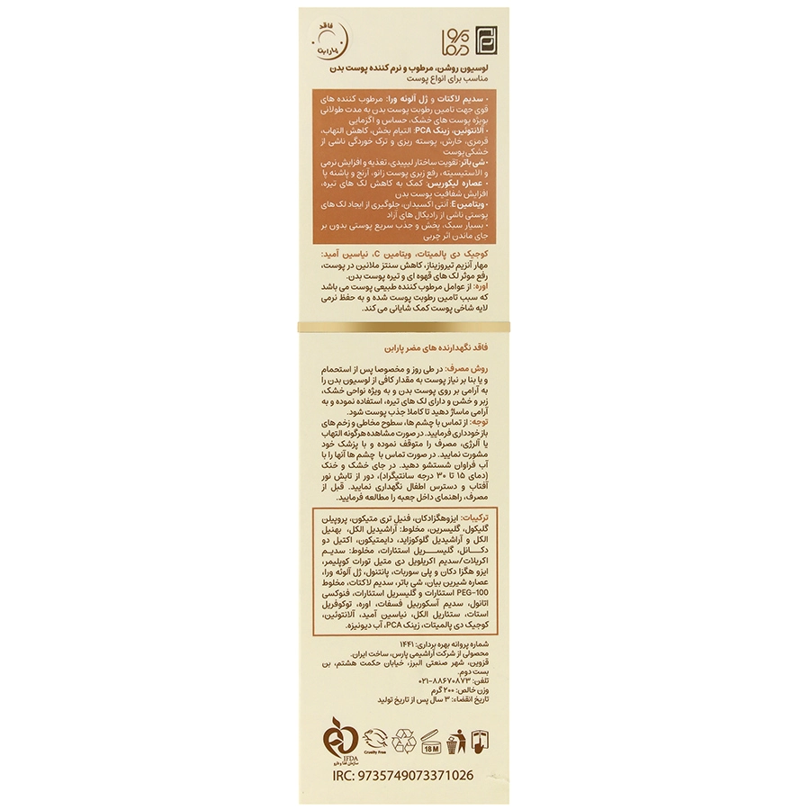 لوسیون بدن پرودرما روشن کننده و مرطوب کننده حجم 200 میلی لیتر