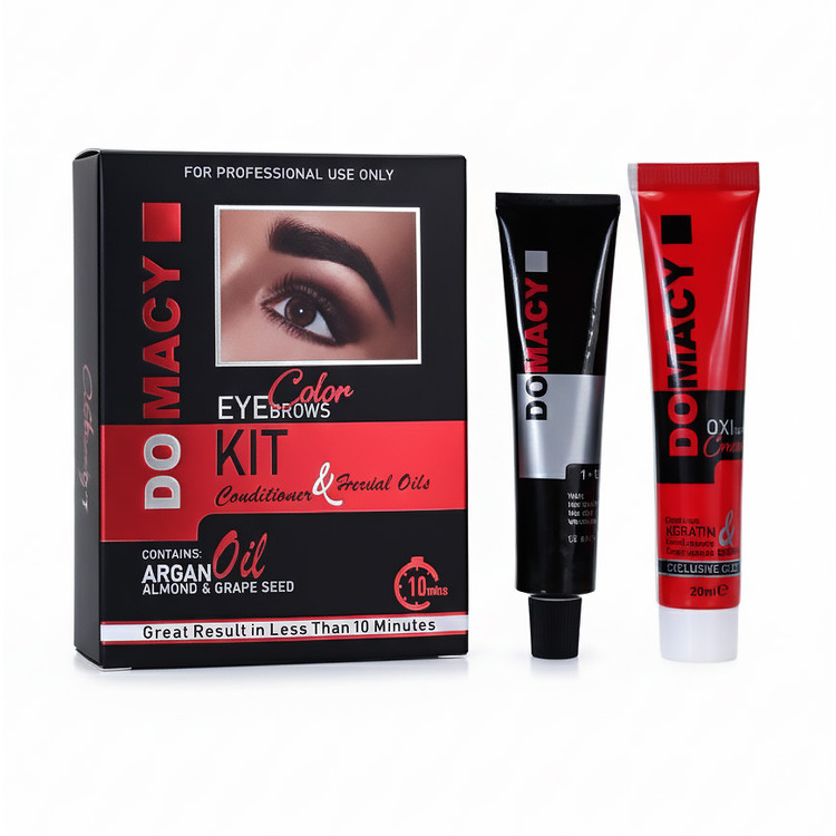 کیت رنگ ابرو دوماسی DOMACY به دلیل داشتن پیگمنت بالا و غلظت رنگ و خلوص بالای رنگدانهها، ماندگاری بالایی دارد و موهای ابرو را به خوبی پوشش میدهد. محتویات این کیت شامل یک عدد رنگ ابرو به حجم 15 میلیلیتر، یک تیوپ اکسیدان به حجم 20 میلیلیتر، یک عدد کاسه پلاستیکی، و یک عدد اسپاتول است.