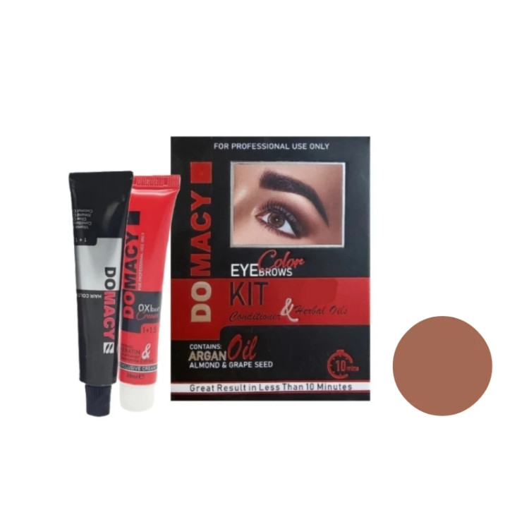 کیت رنگ ابرو دوماسی DOMACY به دلیل داشتن پیگمنت بالا و غلظت رنگ و خلوص بالای رنگدانهها، ماندگاری بالایی دارد و موهای ابرو را به خوبی پوشش میدهد. محتویات این کیت شامل یک عدد رنگ ابرو به حجم 15 میلیلیتر، یک تیوپ اکسیدان به حجم 20 میلیلیتر، یک عدد کاسه پلاستیکی، و یک عدد اسپاتول است.