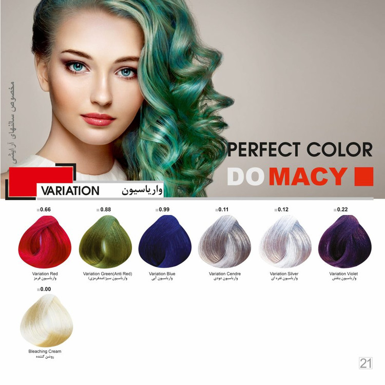 رنگ مو دوماسی با فرمولاسیون فرانسوی دارای قدرت پوشش دهی و پایداری فوق العاده بوده و به دلیل آمونیاک کم مانع از خشکی و آسیب به مو می شود.