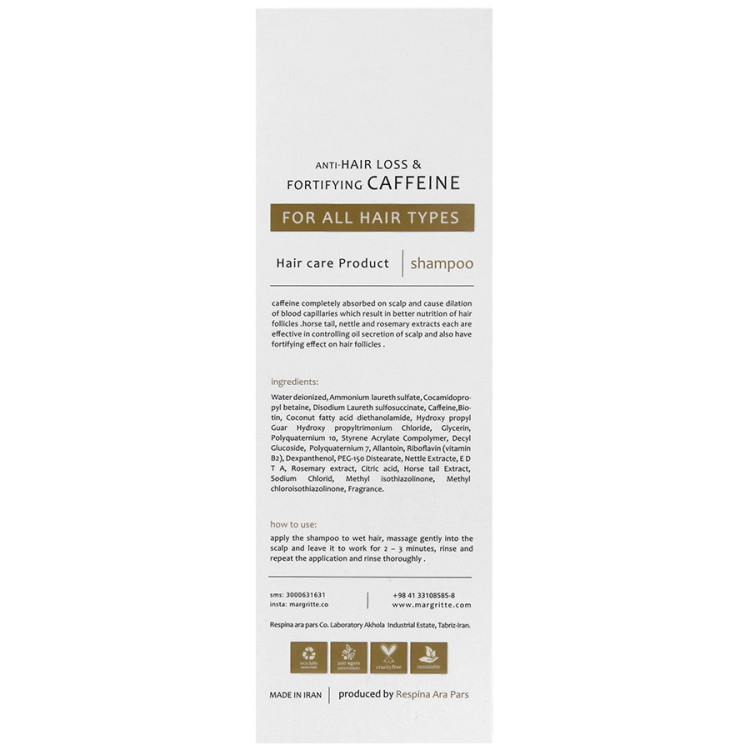 شامپو تقویتی و ضد ریزش کافئین مارگریت مناسب انواع مو حجم 250 میلی لیتر