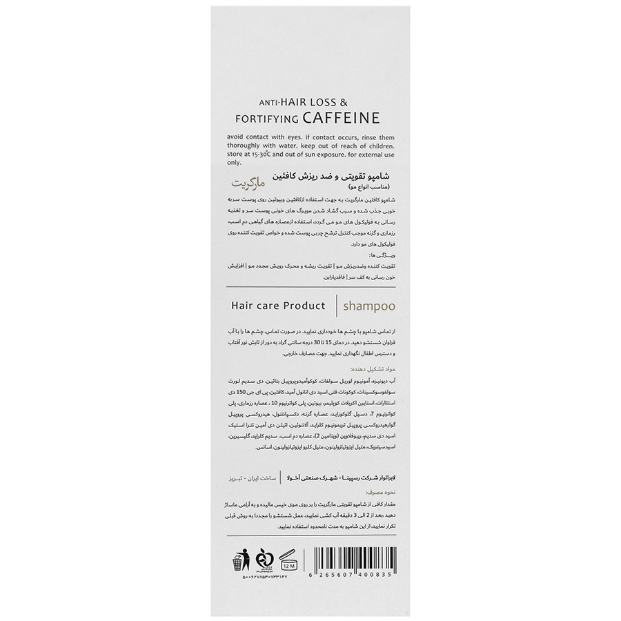 شامپو تقویتی و ضد ریزش کافئین مارگریت مناسب انواع مو حجم 250 میلی لیتر
