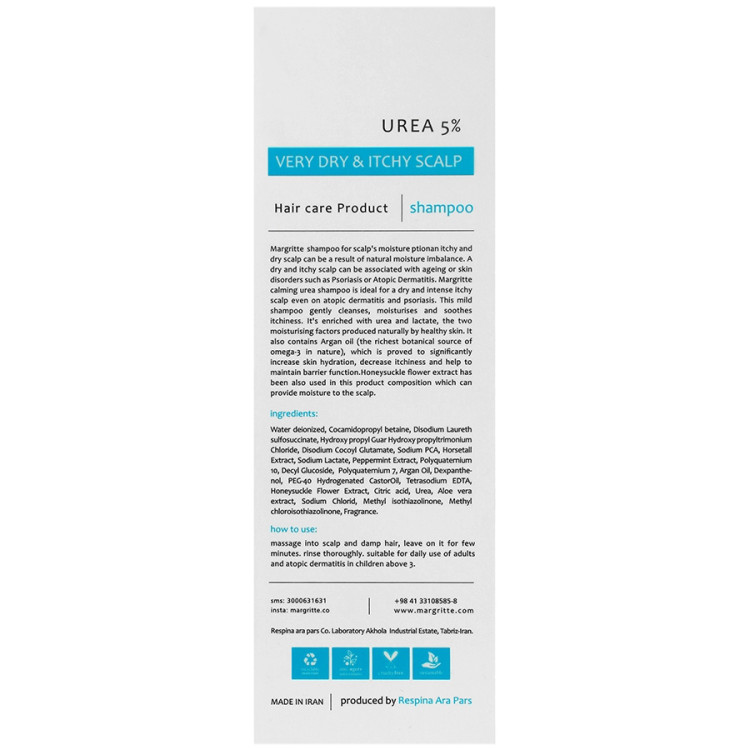 شامپو اوره 5 درصد مارگریت مناسب پوست سر بسیار خشک حجم 250 میلی لیتر