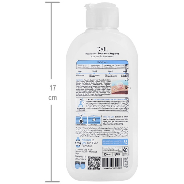 محلول پاک کننده آرایش شیری دافی مناسب پوست خشک حجم 200 میلی لیتر